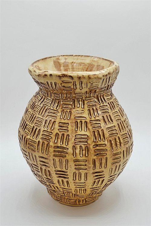 | Description: | Coil built vase with carved patterns and glaze. Fired to Cone 6 electric |
