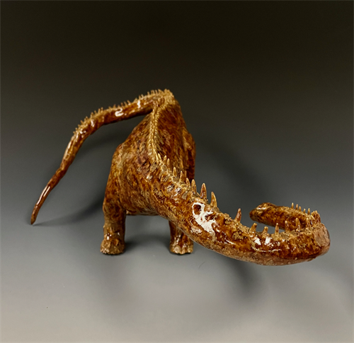 | Description: | Handbuildt sculpture of a Diplodocus dinosaur using pinch method and additive methods with relief work. |