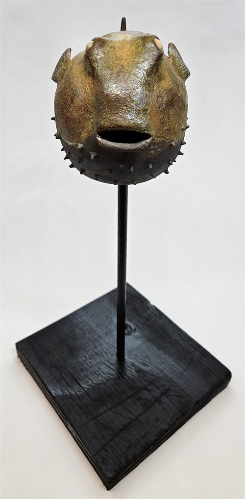 | Description: | Through my recent works, I have explored nature and wildlife, and the communication between that and people. To look at a living creature’s eyes and not sense a soul is an experience I wish to capture and share. This is most present in my Raku Pufferfish. |
