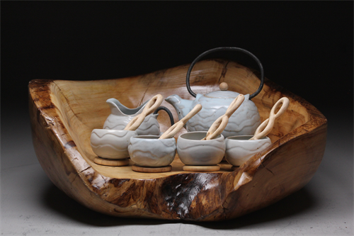 | Description: | I have always found the ocean fascinating. Out of all the organisms that lie within, I find the oyster and pearl to be the most inspiring. The oyster appears ordinary at first glance, yet it has the ability to turn unwanted particles into extraordinary pearls. For my final high school piece, I decided to integrate all the skills I have developed over the years to represent the oyster in the most challenging, functional form to master: the tea set. Like the oyster, a tea set does not impress with its large size; its beauty comes from within the time devoted to its development, its delicacy, and its functionality. After numerous broken pieces and piles of imperfect teacups, I created sphere-shaped vessels that mimic the oyster with carved waves to represent the ocean it came from. I made each component using natural materials: porcelaneous clay I threw into vessels, powders I mixed into Sam’s Satin Celadon Glaze, wood I turned and carved into teaspoons and rings, a tree stump I ground and sanded into the shell, and metal rods I forged and welded into handles. This piece symbolizes the oyster's ability to utilize the materials available and transform them into something beautiful. |