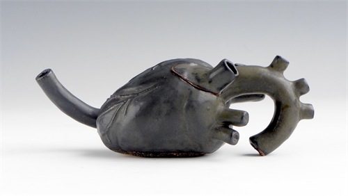 | Description: | A thrown and altered heart form with handbuilt alterations. Based on xing chinese teapots. |