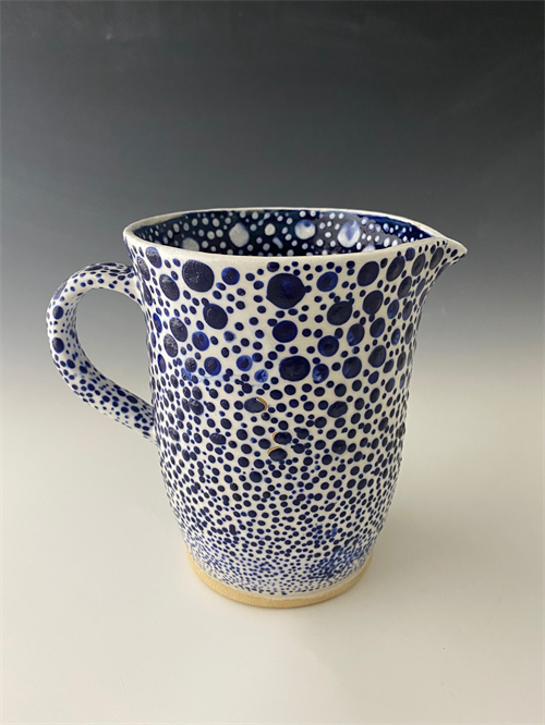 | Description: | Wheel thrown stoneware pitcher with blue and white underglazes and clear cone 5 glaze |