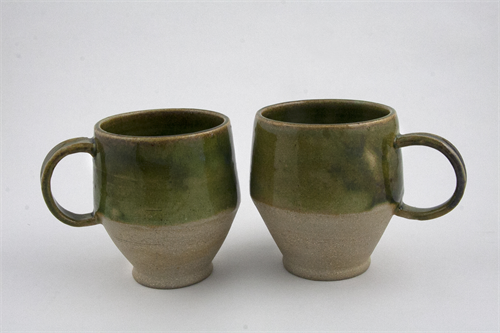 | Description: | Two Wheel-thrown mugs made with Cone 10 Stoneware clay and fired to Cone 6 Oxidation. |