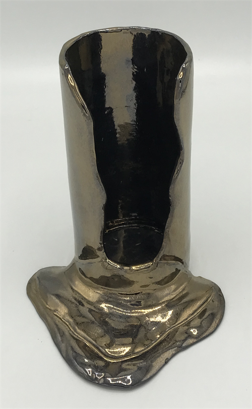 | Description: | Antique Brass glazed low fire earthenware with side melting down like a candle. |