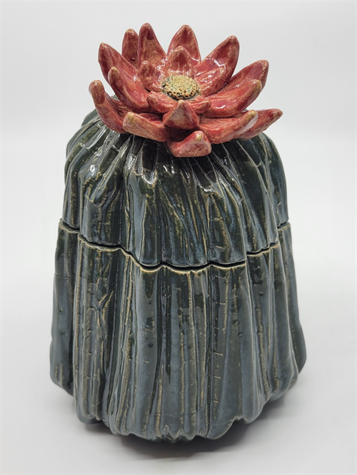 | Description: | I made this using the Kurinuki and wabi-sabi techniques. When making this piece I got the idea to create the handle into a flower as well as the texture into one of a cactus. I love succulents and the way they look, basing my piece on that. My love of them originates from the cultural meaning they have in my life, coming from a Hispanic background. |