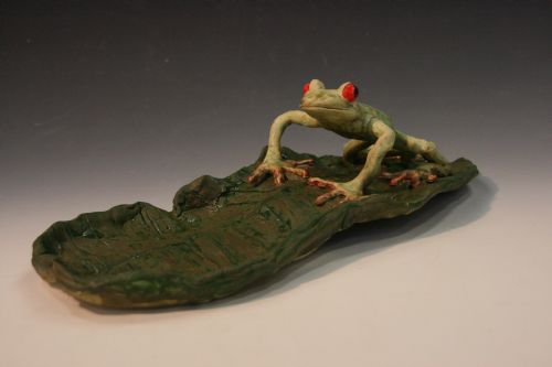 | Description: | Costa Rican red-eyed tree frog on a leaf Cone 06/04 earthenware with glazes |