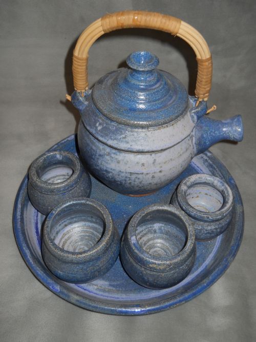 | Description: | Wheel-thrown teapot with a stoneware glaze. The set includes teapot, platter, and four cups. |