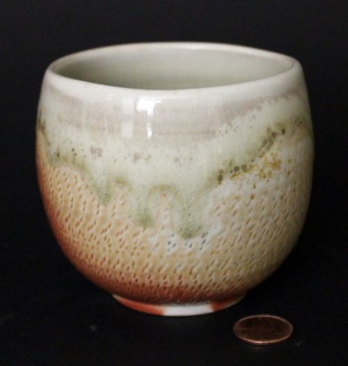 | Description: | Porcelain Wood-fired tea bowl. This piece was fired in Nils Lou's East Creek Anagama in Willamina, OR. Grace has actively participated in firing this kiln for the past three years. |