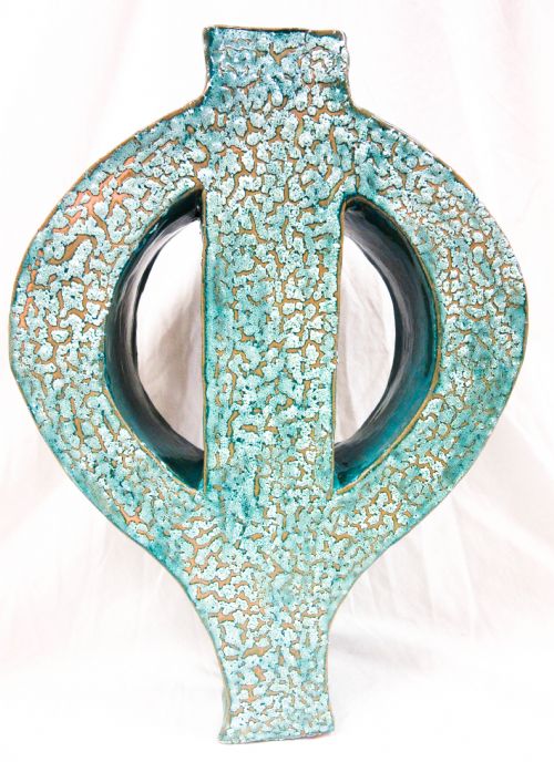 | Description: | This is a slab-built vessel made using red stoneware, aquamarine glaze and a special white crackle top coat. |
