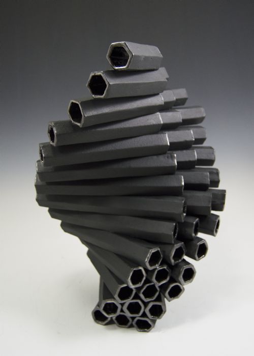 | Description: | Piece was built using extruded hexagon tubes and was finished with underglaze and metallic glazes. Fired to cone 6 |