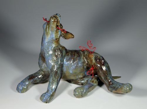 | Description: | Depicts the dog removing the arrow that crippled it, a moment of agony that also signifies a reclaimed freedom in the future. |
