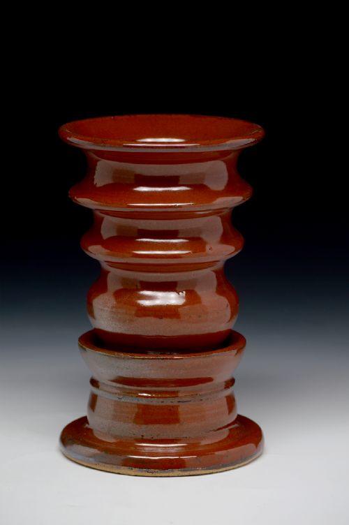 | Description: | Thrown and stacked vase form. Tenmoku glaze and fired to cone 6 oxidation. |