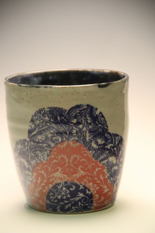 | Description: | This piece has rice paper decals. Ari pieced them together and played with pattern and color. |