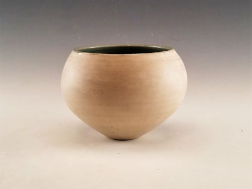 | Description: | Wheel-thrown stoneware with bare, burnished exterior and green glazed interior fired to cone 11 in reduction. |