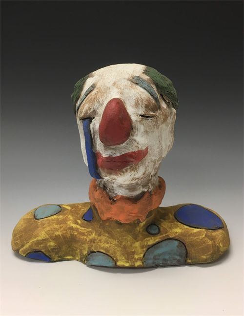 | Description: | I wanted this piece to communicate that the funniest people can also be the saddest. Being funny constantly and having to keep up a silly personality can really drain a person. This piece came out just like I had hoped and I think the message is important and shown well in the sculpture. |
