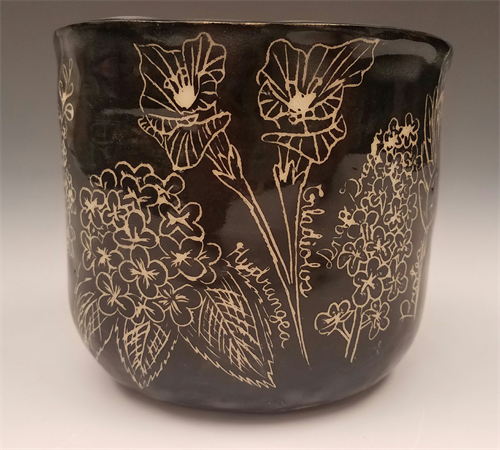 | Description: | Slab built sgrafitto vase, with underglazes and glazes. |