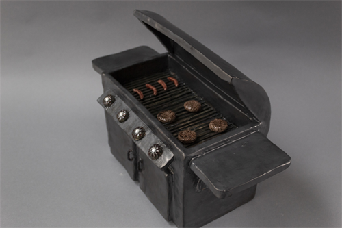 | Description: | Outdoor grill with hamburgers, hot dogs. |