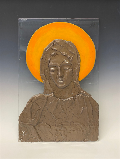 | Description: | This piece is a recreation of the virgin Mary’s bust from Michelangelo's “Pieta” sculpture, in which she is cradling Jesus’ corpse. The sculpture embodies Mary’s expression and disregards any evidence of Jesus’ presence, representing the portrayal of Christianity disguising negative aspects. I considered the ambiguous aspects of 2D art and made the connection to religion being open for interpretation. The glass base follows the idea of transparency and multiple viewpoints to Christianity. |