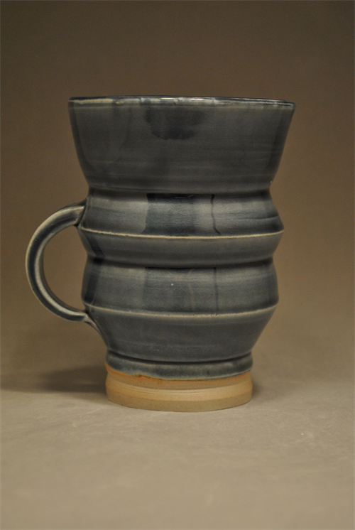 | Description: | Thrown mug shaped with sharp angles, with a sculpted handle. |