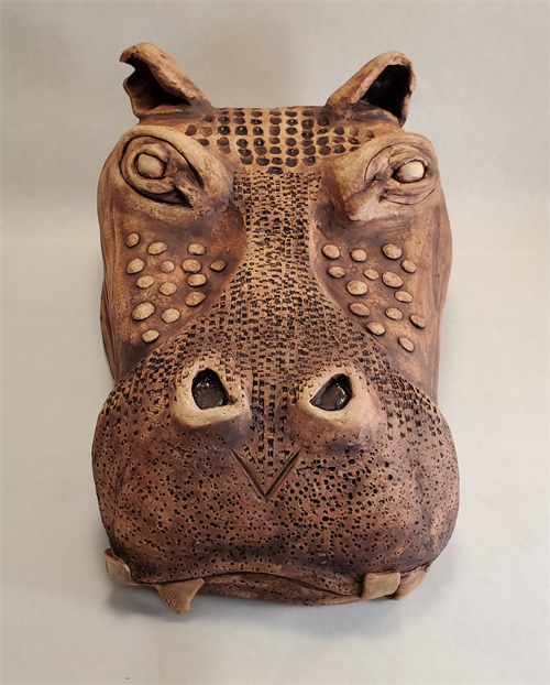 | Description: | Stylized hippo table top/pedestal display. Slab construction with additive, subtractive and impressed textures. Ceramics 1 |