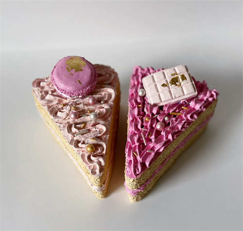 | Description: | When I was younger, my mother would take me and my two older brothers to the bakery and we would pick out our favorite cakes from the display. The two cake slices represent my two older brothers and the memories we made as children. I wanted to mimic the extravagance of the bakery cakes with the decorations on top and create a sense of whimsicality and nostalgia. |