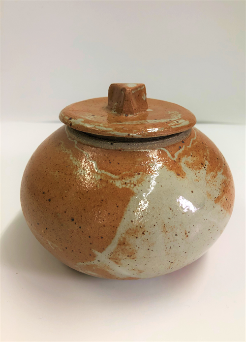 | Description: | Wheel thrown belly pot with fitted lid. |