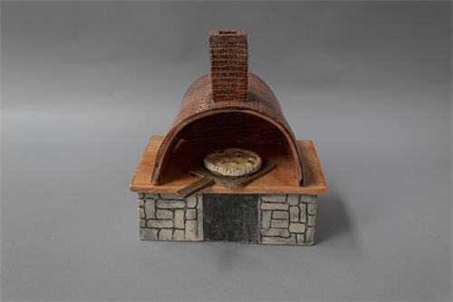 | Description: | Stoneware, lowfire glazes. Outdoor pizza oven with pizza |