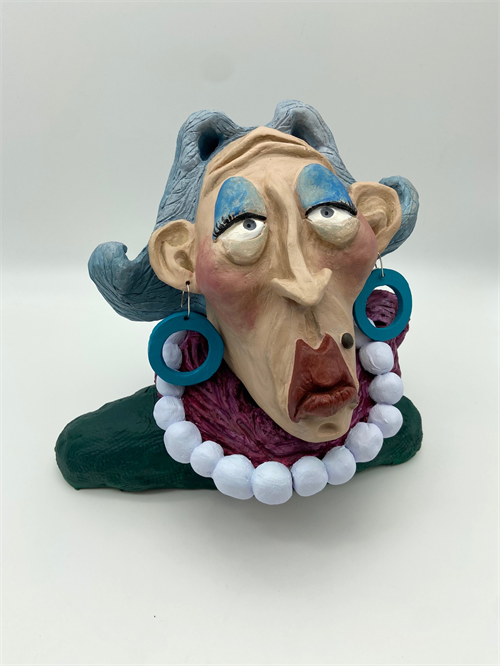 | Description: | A Caricature Bust of the lady next door who always wears her pearls and bright colored feather boa. |