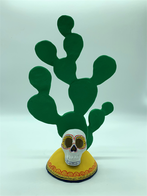 | Description: | This is a tribute cactus planted in the memory of my family members as a tradition in my families home in Mexico. I included a stylized sugar skull from the day of the dead as a marking of where the person was laid to rest. |