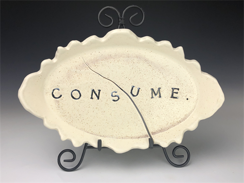 | Description: | Slab-built platter with stamped letters and intentional crack. |