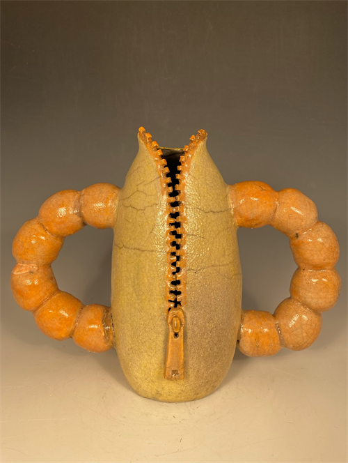 | Description: | Puffy arm vase with zipper detail inspired by clothing designer Maison Margiala's fall collection of puffer jackets. Wheel thrown and hand-built. |