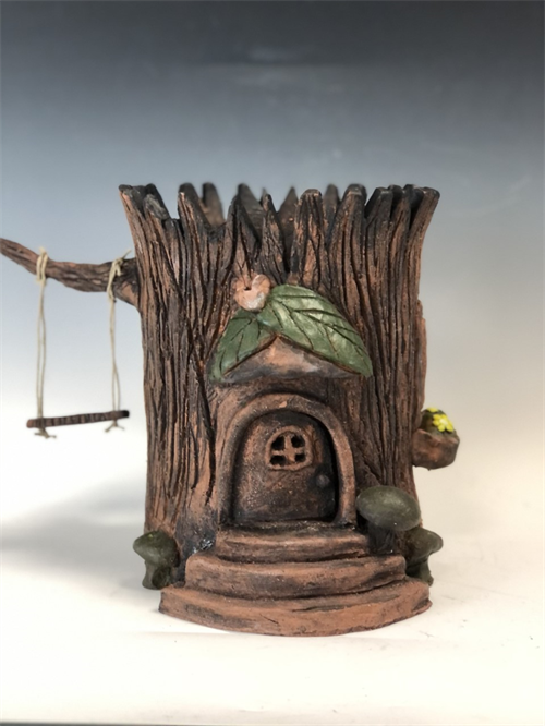 | Description: | A fairy tree house with mushrooms, flowers, and a swing. |