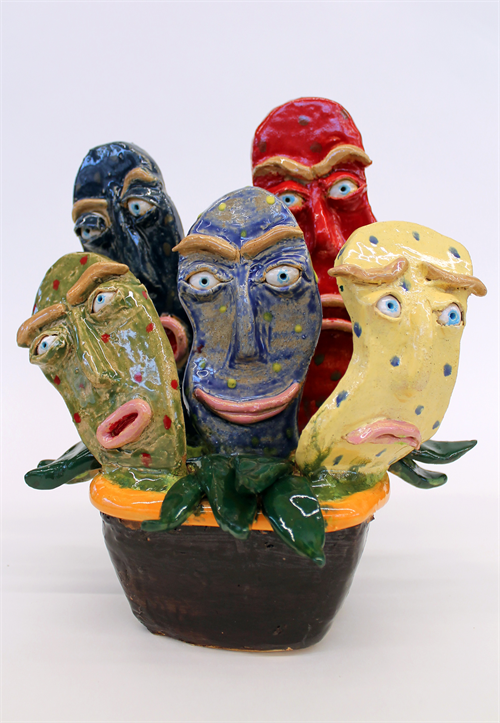 | Description: | Plant and Kusama inspired sculpture featuring an array of expressions. White stoneware clay and cone 6 glazes |
