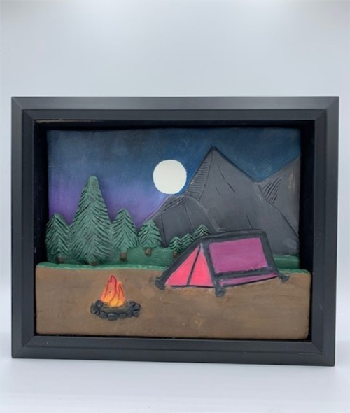 | Description: | Low relief construction using three separate slabs to create the illusion of a night time camp scene. The foreground slab is out in front of the middle ground scene which in turn is in front of the background scene. NOTE: "Soop" means forest in Korean. |