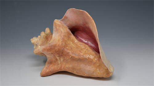 | Description: | A handbuilt, trompe-l'oeil conch shell, made of low fire clay and layered underglazes |