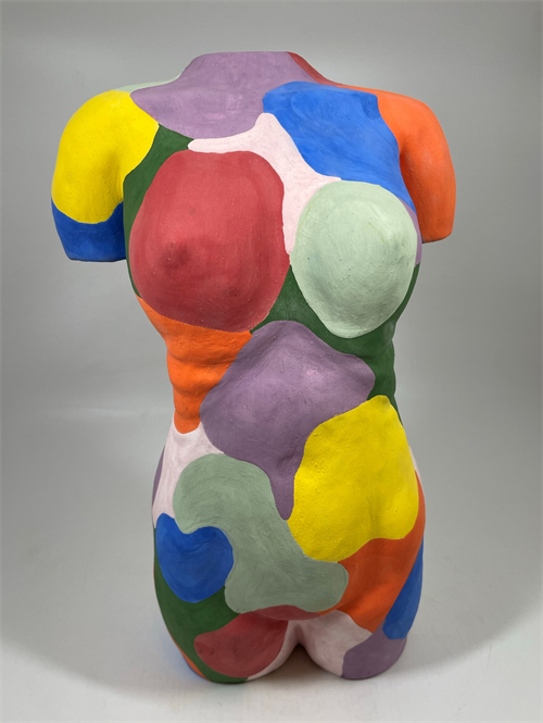 | Description: | Slab built figurative sculpture with multi-colored surface |
