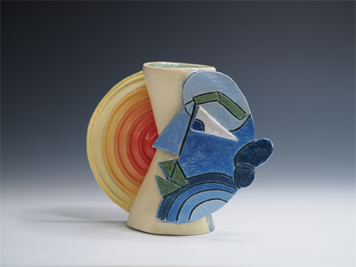 | Description: | Wheel-thrown Stoneware Sculpture, underglazes, glazes, fired to cone 6 in oxidation. |