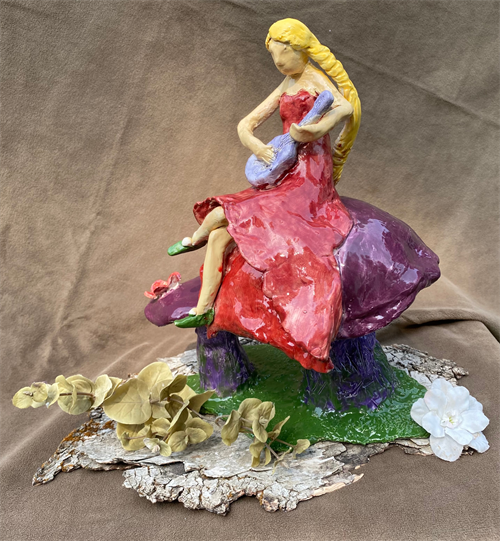 | Description: | I love nature, and even though I live in a bustling City, I take every opportunity to be one with nature. This forest sprite is an example of my obsession with nature. Making this creature was like making an object from pure imagination. Every piece of clay was put on with the knowledge that this piece would be an element of nature. Throughout the time I spent working on this piece, I kept reminding myself that it was for nature, and that helped me persist. No matter how hard things got, I always knew that when she was finished she would be an element of my vision of nature. |