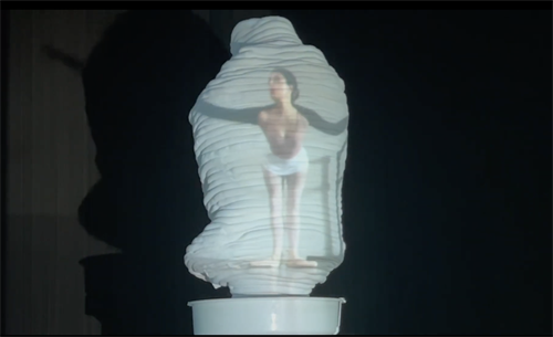 | Description: | When the outer world denies personal struggle, it leaves a silent space to absorb suffering inwards; in my past experience in ballet, this has been through body dysmorphia. The 4-foot tall coil pot is sculpted with curves and left intentionally unblended to distort the projection of me dancing. I pushed the medium to its limits on the brink of cracking, as dancers push our bodies, and this project pushed me to display my body with a total front/back view, something I would have found unfathomable just a year before. The mechanistic process of extruding coils informed my repetitive choreography, a simple barre piece, as body dysmorphia starts from the basics. The pot is spray-painted white: I still recall my first time buying stage makeup, the saleswoman telling me “ballerinas just have to be white.” Body-dysmorphia is not confined to thinness--dysmorphias exist in the culmination of straightening our curls, shaving, painting on faces, surgically sculpting our features. Dysmorphias are not distortions--they are the material manifestations of a very real and largely unspoken pressure to mold to a porcelain doll, straight-haired, thin beauty standard. Earth, like the skin of art, begins as a raw block as our skin and bodies begin as blank canvases onto which we tattoo, apply makeup, alter with plastic surgery, and attempt to sculpt and tone. Artists are choreographers. The sculptor takes a raw block of clay, claims possession over it, then configures it to dance in a ballet. Dysmorphia rotates on a pottery wheel, as I sought to make the vase spin for the audience, locked in my choreography until I stamp down the pedal and make it stop. |