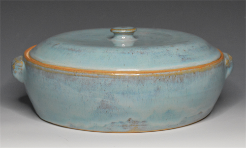 | Description: | A thrown ceramic vessel with lid. The form expresses bulbous line to investigates the relationship between the environment and water. |