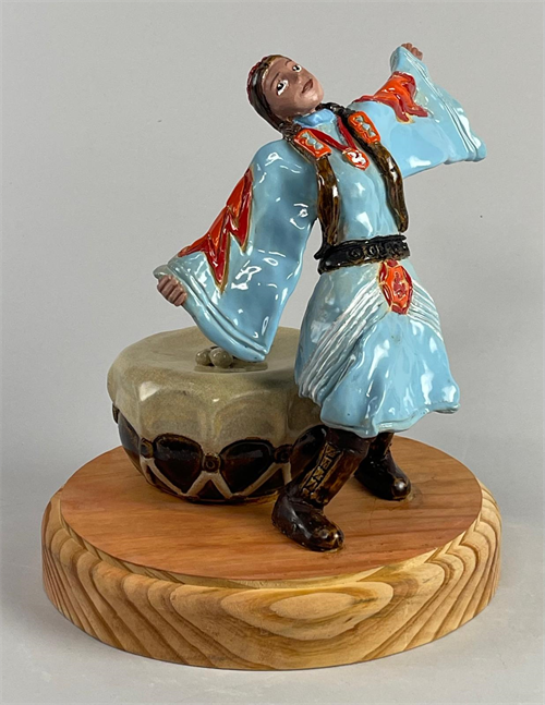 | Description: | Figure Sculpture of a traditional Native American dancer in traditional regalia attire. Additionally the base of the piece consists of a round hand crafted wood base and a drum crafted on the wheel. |