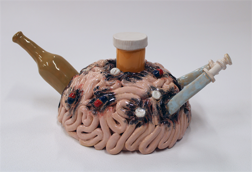 | Description: | I created the piece to show the damage being addicted to something does to your brain. In the brain, there’s different items that are seen, these represent the idea that people can get addicted to anything. Many see the idea of being addicted to something you can get over, which you can, but still it scars your brain and your way of thinking. Overall, the idea was to picture the trauma the brain faces from addiction. |