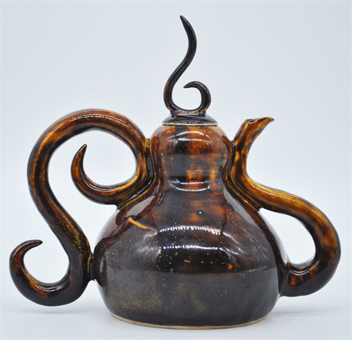 | Description: | A teapot with sculpted handle, spout, and lid. |