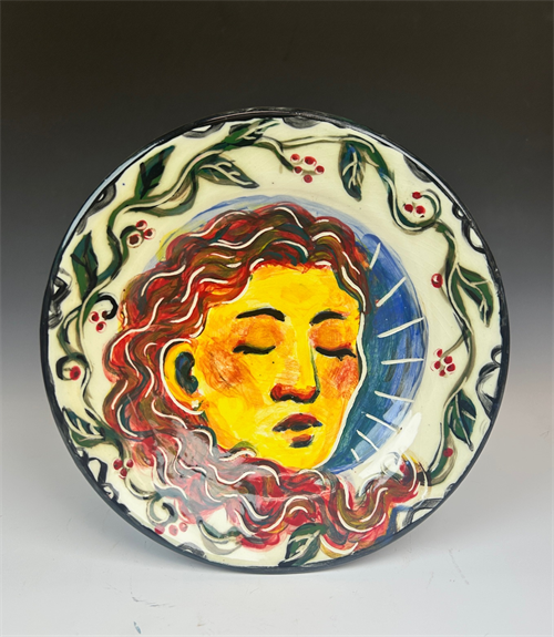 | Description: | Wheel-thrown platter with underglaze and sgraffito |