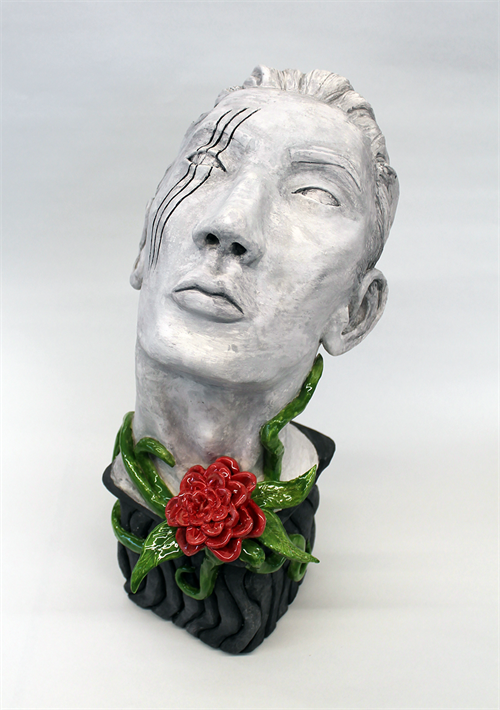 | Description: | Hand built male portrait on base finished with underglazes and glazes |