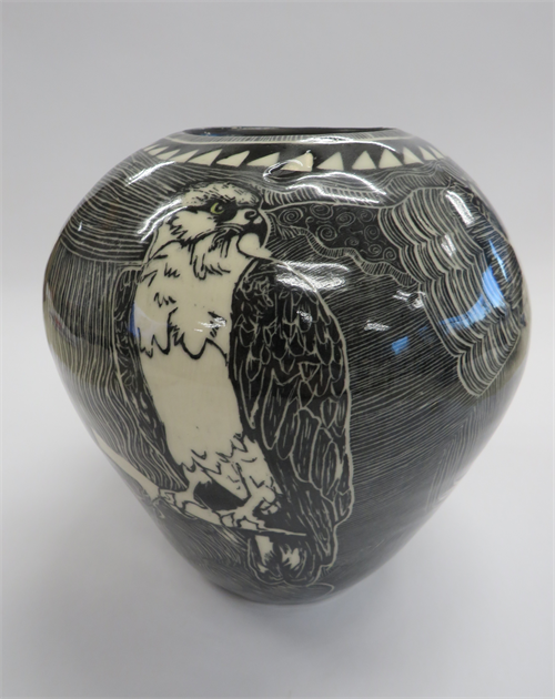 | Description: | coiled pot jar, sgraffito decoration with osprey images (a local Cape Cod bird ) |
