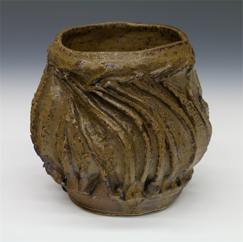 | Description: | a faceted pot with a wood like texture I made it by bringing the walls together and make scores with a needle tool and expand from the inside. |