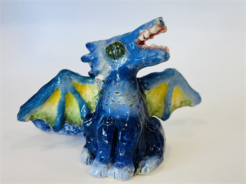 | Description: | Hand Sculpted dragon, created using Low Fire Clay with Low Fire Underglaze and Clear Gloss Glaze. |