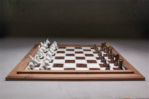 | Description: | This chessboard explores the relationship between user and consumer through its contrasting sides. The light side features animals, symbolizing their precedence in nature and in chess. The dark side represents humanity, highlighting our dependence on nature for sustenance and on the white side to make the first move. |