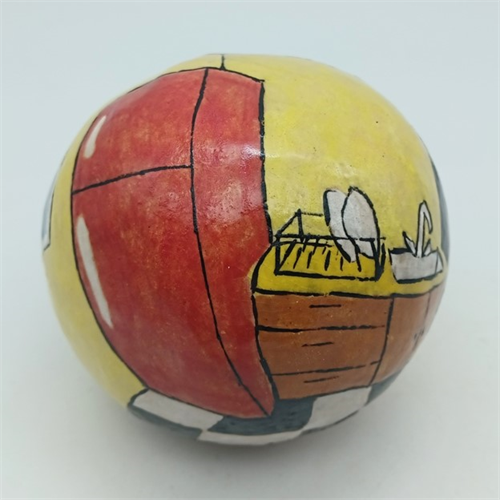 | Description: | I wanted to make a perfect sphere out of clay, but that by itself would be boring. I’m really fascinated by how spheres and curved surfaces warp shape and perspective and I realized this was the perfect opportunity to experiment with a panoramic sphere, a ball with a scene painted onto it that you can see in all directions. I think they work because your brain processes images captured through a sphere (your eyeball) anyway, I also think it’s really cool that on a sphere a line can look straight from one angle but curved from another. I also wanted to place the viewing spot off center from the middle of the room simply because I thought it would be cool and an extra challenge. I sketched ideas in my sketchbook but I also did tests on a lemon and a paper ball to see how perspective would work on a sphere. I bisque-fired it before applying underglaze and clear glaze. I sketched the design onto the sphere with pencil first and dabbed away the extra graphite with a damp sponge before applying underglaze. I also checked online to make sure graphite would safely burn away completely in the kiln. I applied satin clear glaze to most of it in the places that are inside, but the window glass is about 5 or 6 layers of glossy clear glaze. It didn’t turn out as visually stark as I would have liked but the texture is definitely different. had seen panoramic spheres before but all the ones I had seen I had the POV point at some sort of central location, such as the center of a room or the middle of an intersection. I wanted to do something different, and presumably the effect would still work if the POV point was closer to one wall than another. Like with my poor man’s kintsugi from last submission, my artistic process has a certain level of masochism that is unique for this class because it should be fun and laid back. A panoramic sphere is already difficult, why would I do a complicated perspective on top of that? Also the perspective was already a challenge, so why did I choose a needlessly complicated subject like a kitchen? For that matter, why did I do any of this at all since I hate glazing? Questions for the ages. |